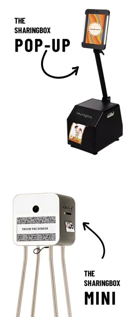 Envie d’une animation tendance et ultra simple pour vos soirées ? Optez pour nos bornes photos compactes et faciles à installer pour créer des souvenirs fun et stylés !nDeux choix s’offrent à vous :nsharingbox POP-UP : discrète, légère et adaptable à tous les espaces.nsharingbox MINI : équipée d’un matériel premium pour des clichés parfaits, quel que soit le lieu de fête.nImpressions haute qualité en moins de 10 secondes, et cerise sur le gâteau : vous pouvez récupérer votre borne près de chez vous pour plus de praticité !nComparez dès maintenant ces deux photobooths et choisissez celui qui correspond à votre style et à l’ambiance que vous souhaitez créer.nAstuce : le template choisi influence le mood de votre événement, selon le nombre d’invités et l’espace disponible.